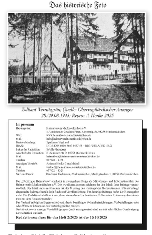 Mit sehr viel Geduld und Umsicht übernimmt dabei seit Anfang an die Druckerei Wilhelm Tiedemann aus Markneukirchen die Umsetzung der zuvor gemeinsam getätigten Arbeit. Unser Dank für die geleistete Arbeit geht deshalb auch an dieses Unternehmen und darüber hinaus natürlich an alle ehrenamtlichen Mitarbeiter die in irgendeiner Form zum jeweiligen Gelingen des „Neikirnger Heimatboten‟ beitragen.